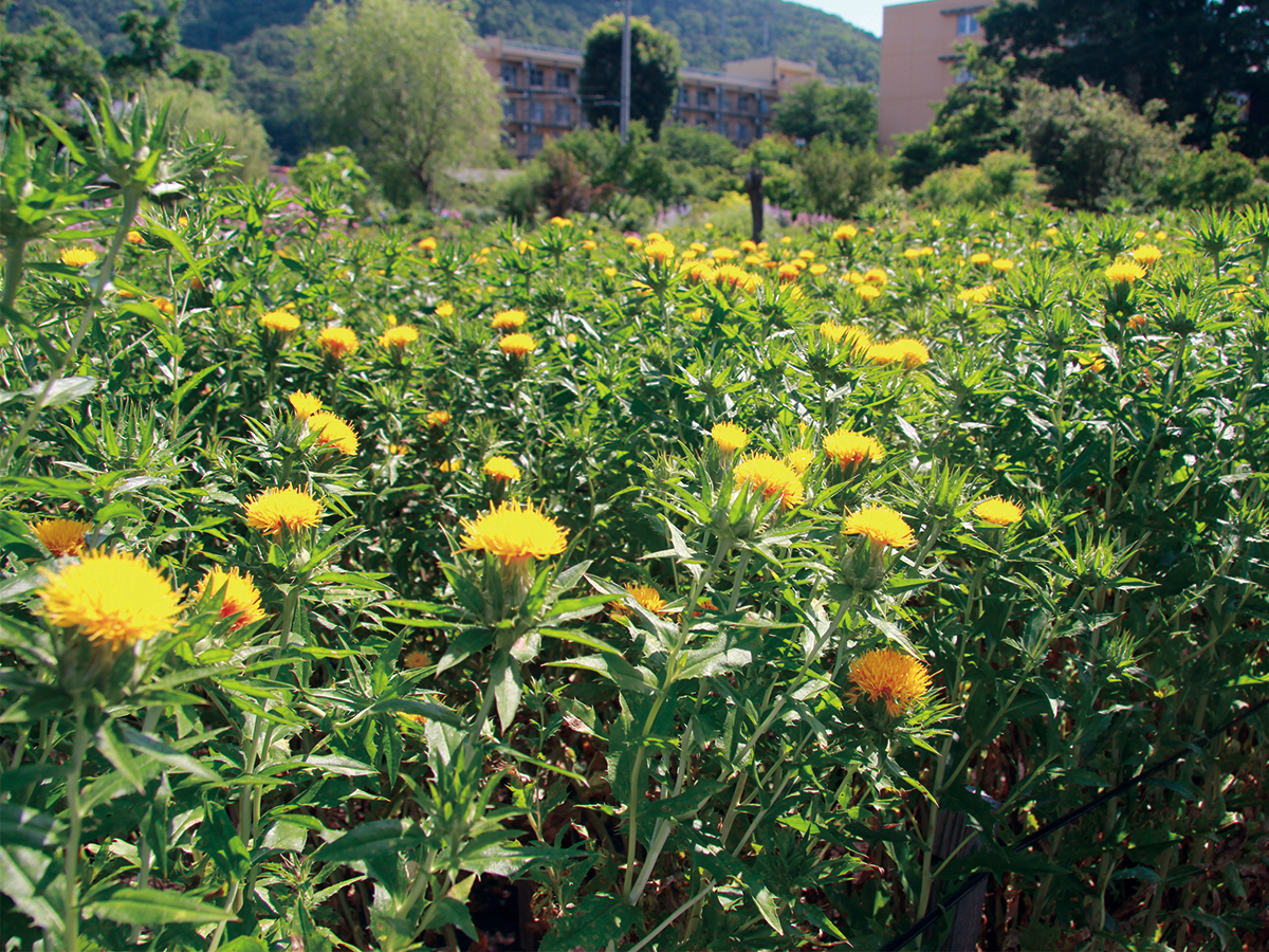 紅花畑が黄色の花で彩られ、今年も紅花摘みの季節がやってきました。 この度、当店は